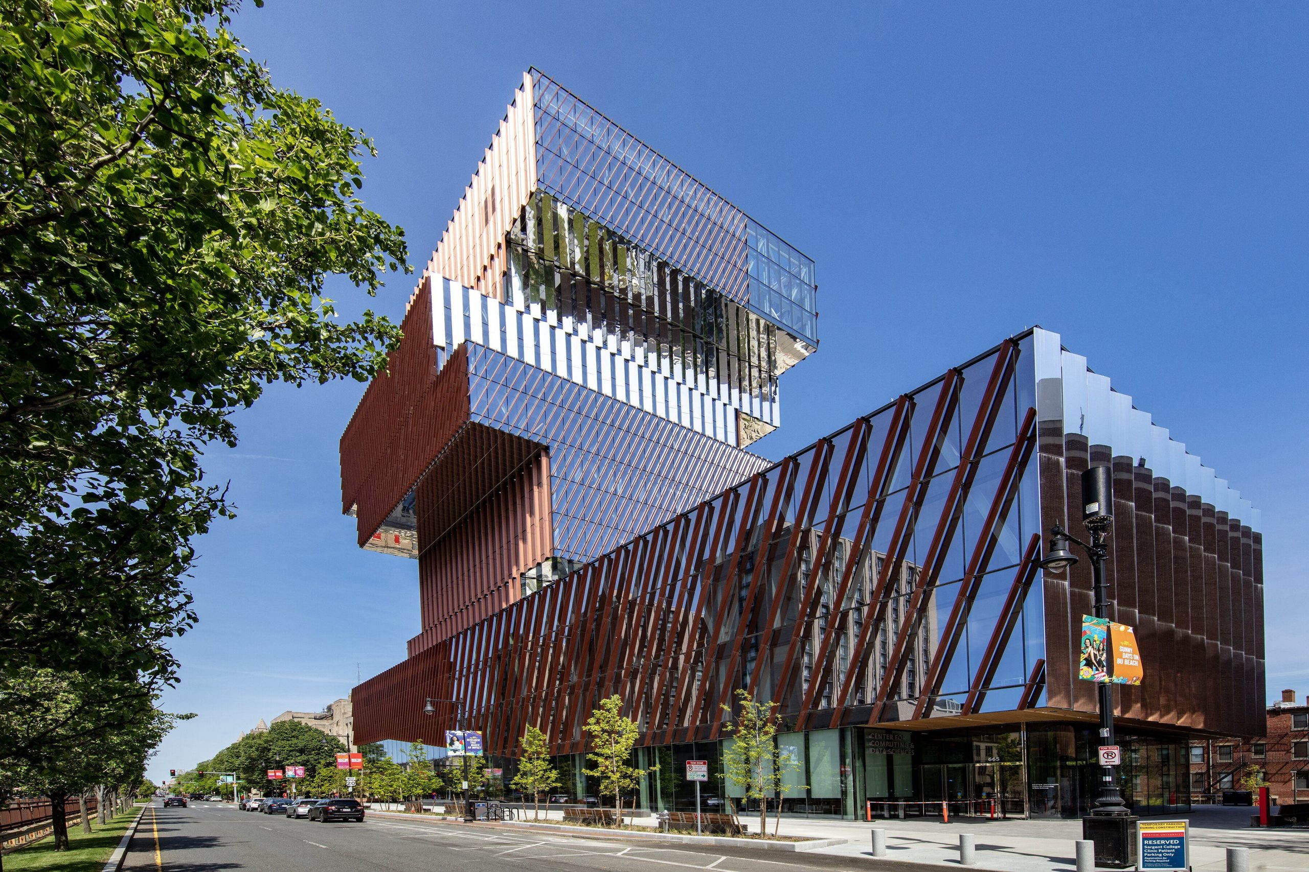 The exterior profile captivates attention with cantilevers that soar above the campus and the Charles River, resembling a towering pile of books – as described by the leadership of Boston University.