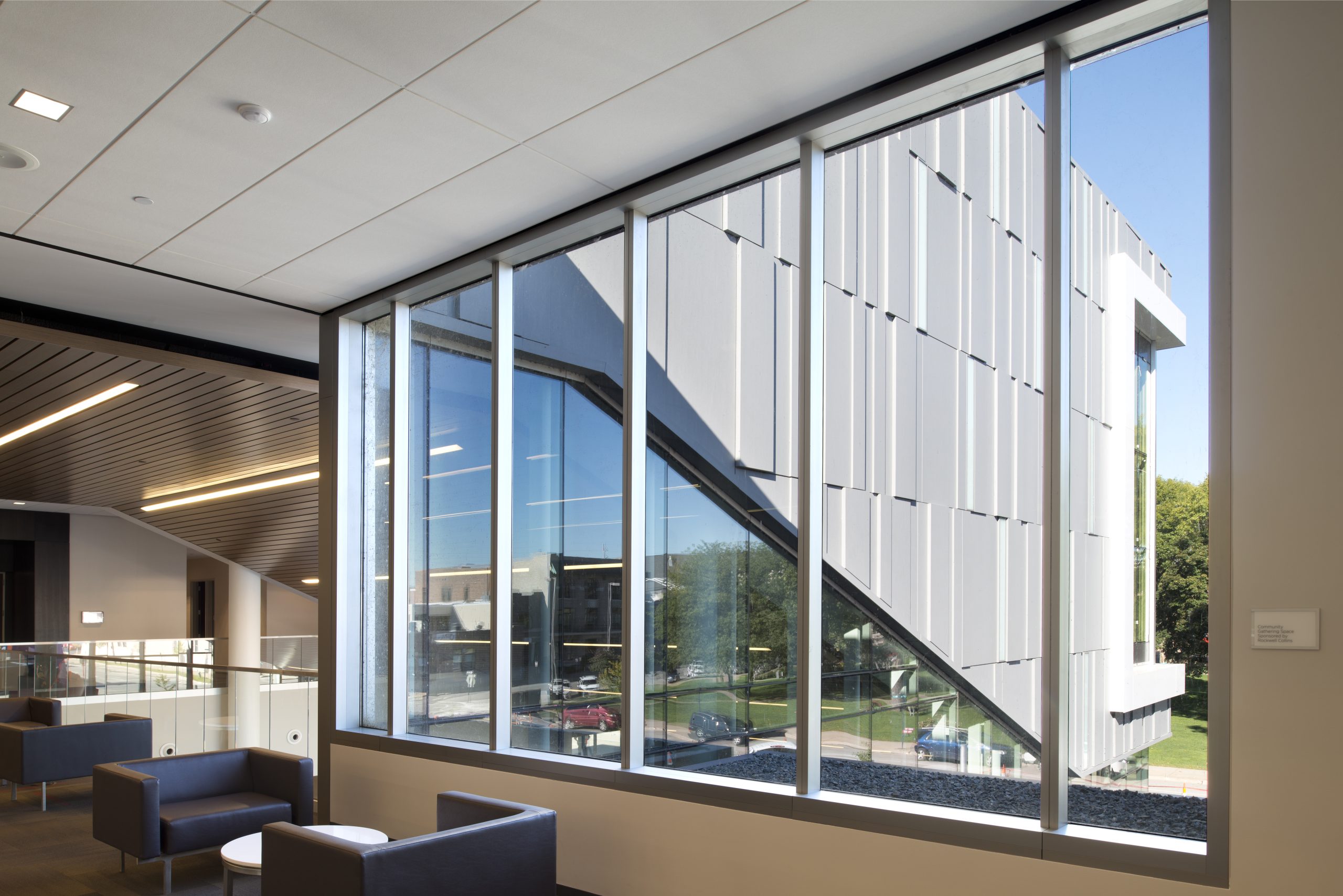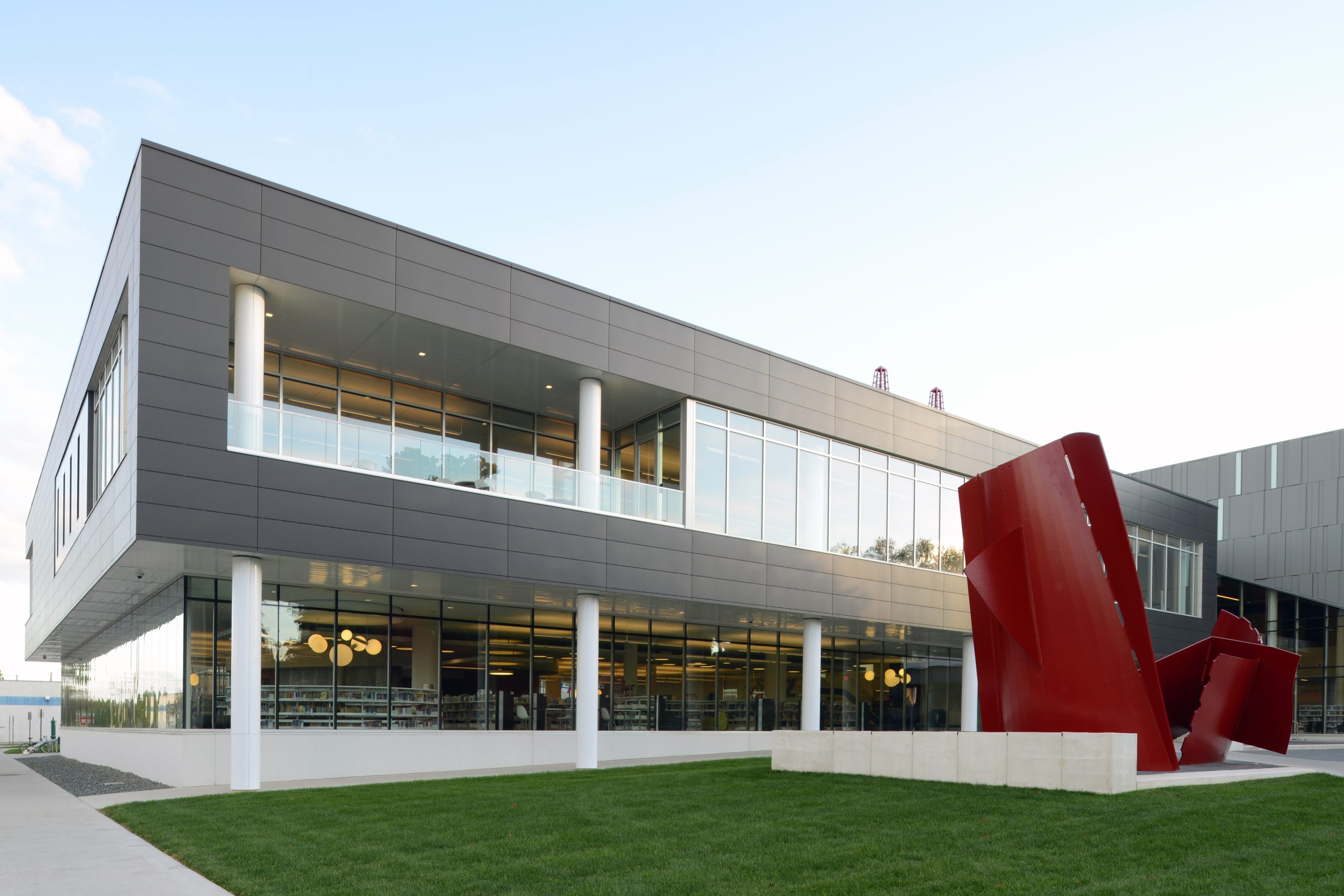 The Cedar Rapids Public Library is a vibrant multipurpose destination. The community drove the project to replace the previous library lost in a devastating flood. The design of the new structure will withstand future weather events and is a space to mix and collaborate. The architecture of the building gives a distinctive presence in the community. To distinguish the architecture, irregularly sized of Reynobond® Composite Material finished with the Design Line™ Zinc Patina coating were layered in random patterns on the exterior walls of the library’s three-story wing, creating an interesting visual counterpoint while also creating a sense of depth and contrast to the smooth surface materials used on other areas of the building.