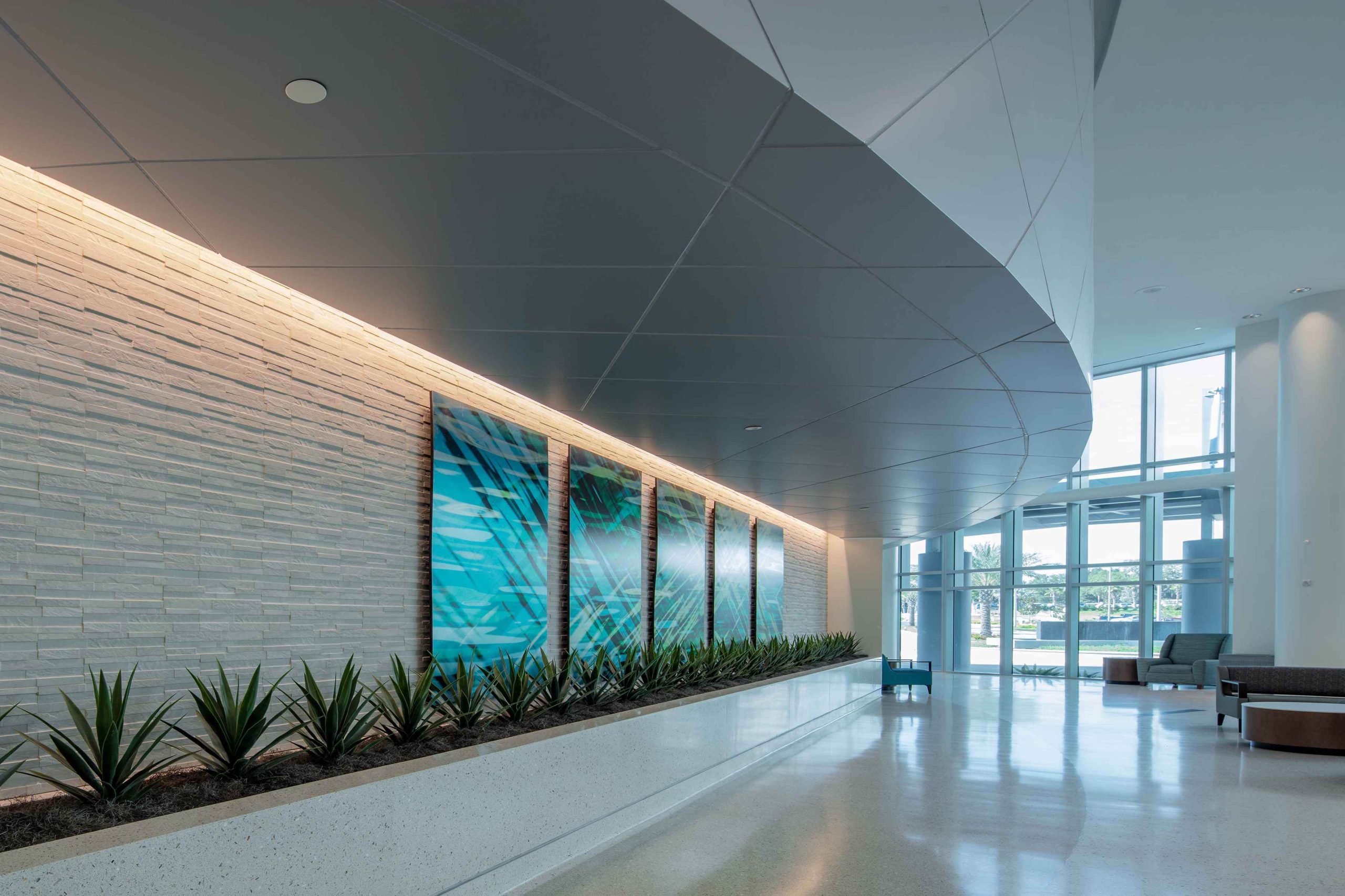 The pavilion is 8 stories high and spans approximately 350,000 square feet. The facility began with a “one architect, one approach, one language” philosophy. The original architectural design set the standard for the Lakeland Regional Health System.
