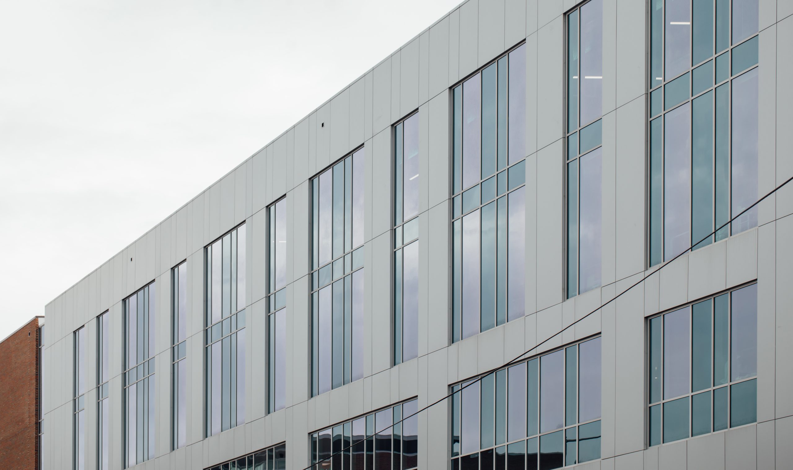 Abrams Architectural Products fabricated and installed 48,349 sq. ft. of our Reynobond® 4mm FR Composite Material in Colorweld® 500 Anodic Clear, framing the building’s understated architecture and tying in with its downtown location.